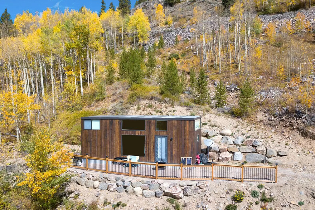 This modern tiny home on a mountain is a stay for those who truly want to get away from the hustle and bustle. The secluded one-bedroom, one-bath cabin is about 30 miles from Vail and offers scenic views, good amenities, and modern design.