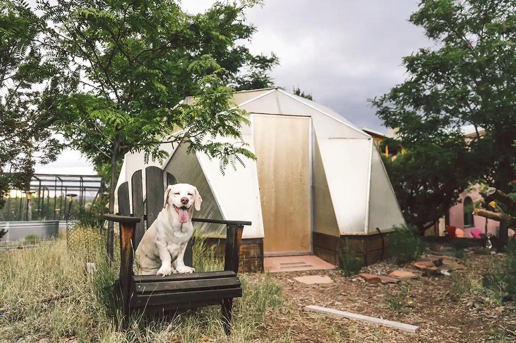 Stay near the artsy town of Santa Fe in an earth-friendly desert casita that allows well-behaved pets. This seasonal property is available May through October for a solo traveler or two people. There’s a full kitchen, private deck, and garden area. A natural swimming area is located on the property, plus accessible hiking trails.