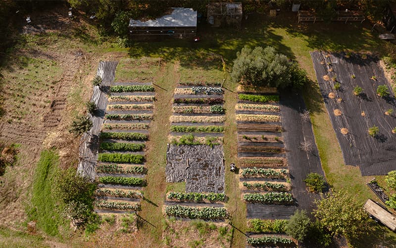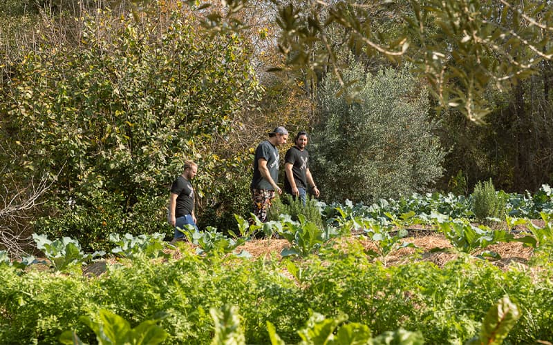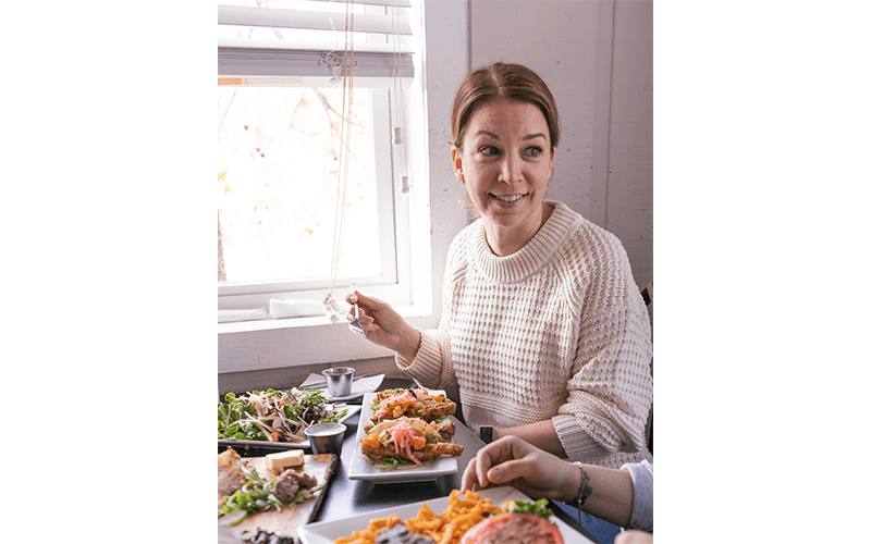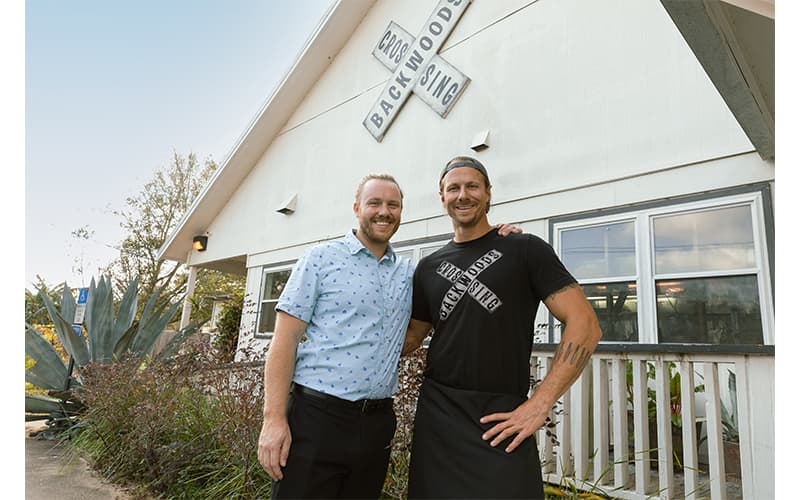 Backwoods Crossing began as a landscaping and herb garden project to enhance the restaurant’s authentic vibe but has quickly grown into a full-fledged farm featuring chickens, pigs, shiitake mushroom logs (which their parents used to grow), orchards, and a greenhouse. The bounty of leafy kale, sun-ripened fruit, and giant mushrooms all comes into play for the restaurant’s signature dishes.