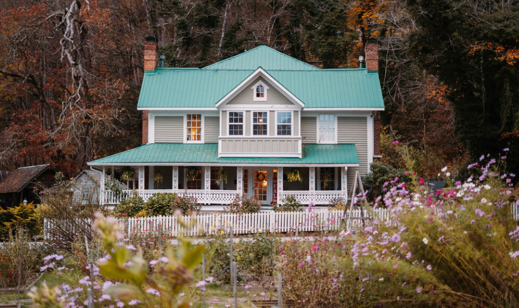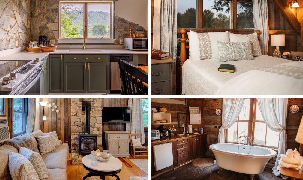 Located just 15 minutes from downtown Boone, The Mast Farm Inn is a historic, family-run inn and cabins in the peaceful and picturesque mountain valley village of Valle Crucis. Each of its charming, country-style rooms and mix of modern and historic cabins holds some history, from the 1810-built Loom House two-person cabin that served as the original Mast family settlement to the Elizabeth Gray Vining room in the inn whose walls still bear the original pine paneling first put there in 1888. The 17-acre riverfront property features a main garden that sources some of the herbs used in the kitchen at the inn’s Valle Tavern restaurant and bar, a market for cooking meals in your kitchen-clad cabin, a wood-heated Nordic sauna, grazing farm animals, and riverfront and fishing access.