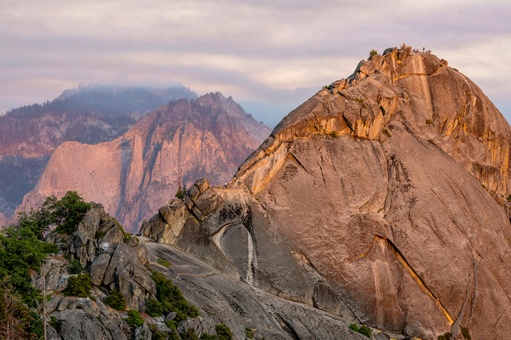 Beyond Mt. Whitney, there are an array of geologic features that contribute to the region’s remarkable landscape. Standing proudly at the entrance to Sequoia National Park is Moro Rock, an iconic granite dome that overlooks the park’s stunning wilderness. Its distinctive shape comes from an erosion process called exfoliation, in which thin sheets of rock have flaked off over time. Climb the well-maintained, 400-step staircase of the Moro Rock Trail to the top of the dome. On the summit, discover unparalleled panoramic vistas of Sequoia National Park’s surrounding terrain.