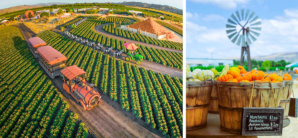 At this working farm producing almonds, pumpkins and forage crops, spend the day listening to live music while feasting on fresh apple pie, pumpkin cake, and caramel popcorn balls from Mrs. B’s Bakery, or take a stroll in the pumpkin fields or sunflower fields. First opened in 1973 by Bill and Sandy Bishop, the farm is also home to the BDF Line, a diesel train that winds through a horse pasture and walnut and apple orchards, a carousel and a Farmhouse Mercantile stocked with décor and gift items spanning serving trays and table linens.