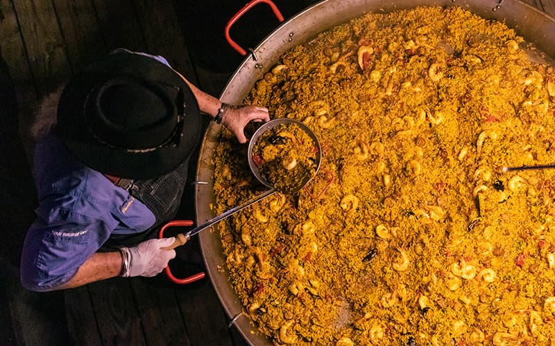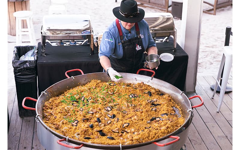Add to this Emerald Coast food scene Joyce Russell, known as the “Paella Queen.” A couple evenings each week, Joyce whips up massive pans of paella for waiting-list-only gatherings of dozens, if not hundreds of guests.