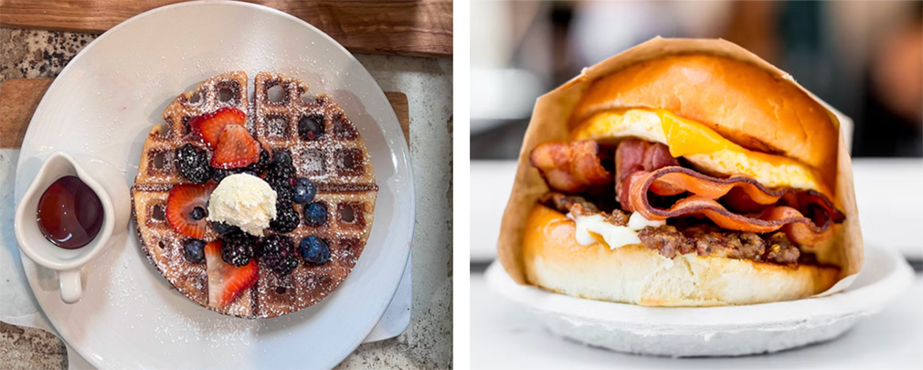 Start your day with a sweet treat at Café Trope and a cup of coffee at Lofty. If you’re tastebuds demand something hardcore, try the bloody Mary and breakfast sandwich at Crackheads.
