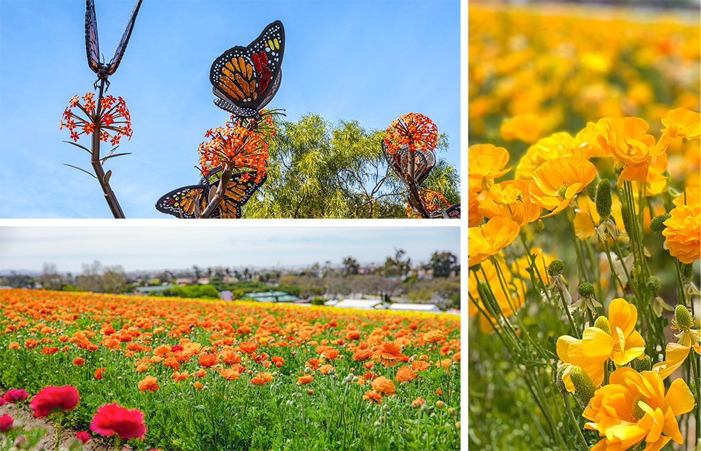 The Flower Fields at Carlsbad Ranch welcomes springtime enthusiasts to wander amongst the colorful 55 acres of Giant Tecolote Ranunculus: a flower renowned for its large, double-petaled blooms that sit atop tall, straight stems. The dazzling attraction stretches eight to ten weeks each year, from early March through early May, with a full slate of activities including live music performances, workshops and wellness classes. For the 2025 season, artist Alex Heveri’s Glass in Flight will features over three dozen glass and steel sculptures of sparkling butterflies, dragonflies, bamboo, bees and insects that complement the gardens and fields.