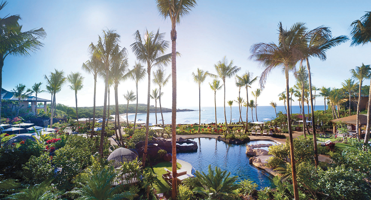Located on the island’s southwest coast, the Four Seasons Resort Lanai enjoys a remote location that rivals a private island. With the beach, ocean and hiking trails steps away from the property, nature figures prominently in the resort’s appeal. Lush, botanical gardens with water features and lagoon-style pools add to the tropical splendor.