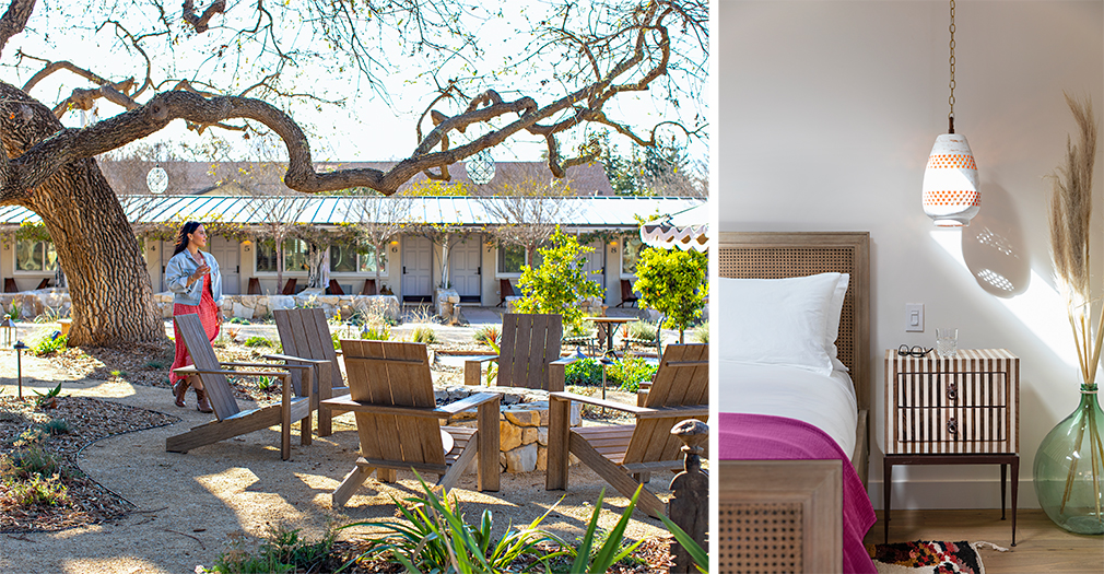 Located at the crossroads of Solvang and Santa Ynez, this secluded, two-acre property with 18 rooms is nestled on two private acres studded with redwood, oak and Madrone trees, native gardens, bonfire pits and a grassy outdoor pavilion for nights under the stars. Relaxed yet sophisticated, the property provides a respite from urban living and a place where modern travelers can lounge in hammocks on their private patio, soak up California sunrays in Adirondack chairs and savor local wines by the fire. Each of the property’s 22 guestrooms interiors are outfitted with Fili’d Oro bedding, comfortable club chairs, vintage vanities, hand-painted tile, local art, and retro mini-bars. Guests can set out on hotel bikes to explore the area, savor happy hour in the garden with wines from nearby vineyards, and order pre-seasoned BBQ cookout kits delivered to their patio with personal Weber grills.