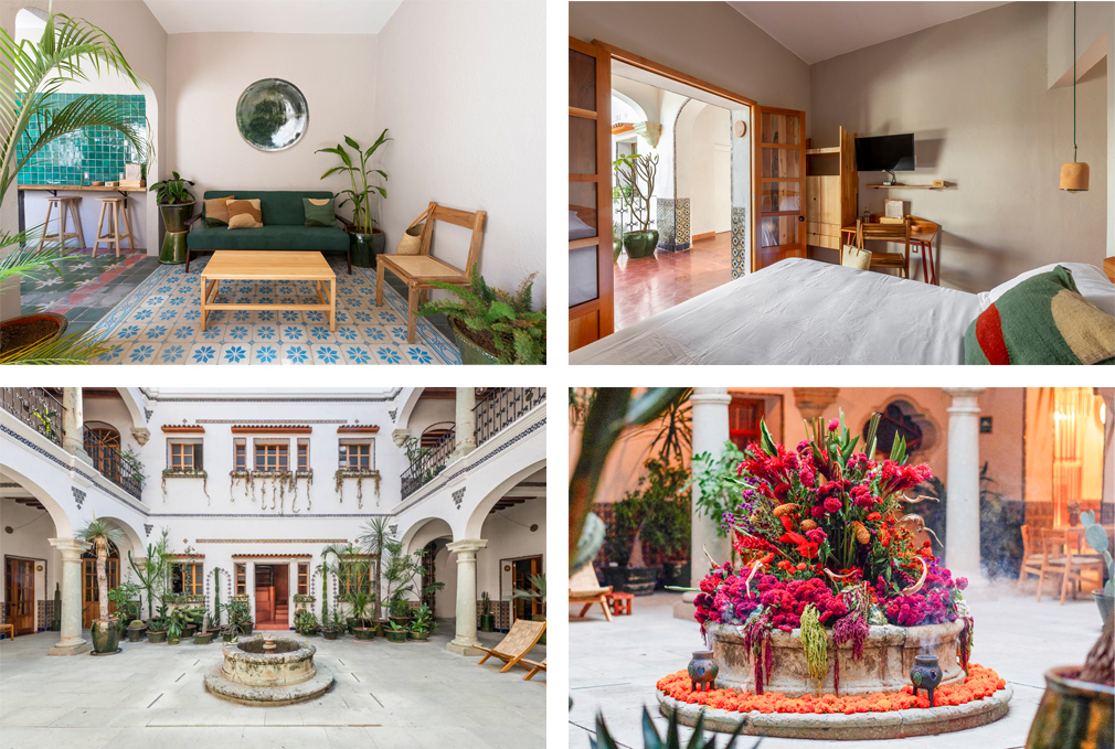 This 14-room boutique bed and breakfast occupies an updated 18th century property in the heart of Oaxaca’s historic center. Started by three Mexican friends with a mutual love for Oaxaca’s rich culture and heritage, Grana B&B exudes that passion in every detail, from its hand-painted sinks, Talavera-tiled floors, consciously curated library bookshelf, and use of locally sourced art, textiles, and pottery throughout. Guest amenities include a daily complimentary Mexican breakfast, rooftop terrace where yoga classes are held, and access to curated guides filled with trustworthy tips and local advice.