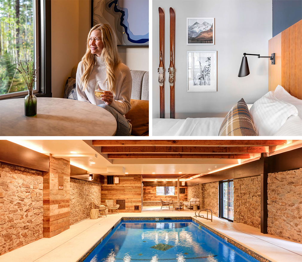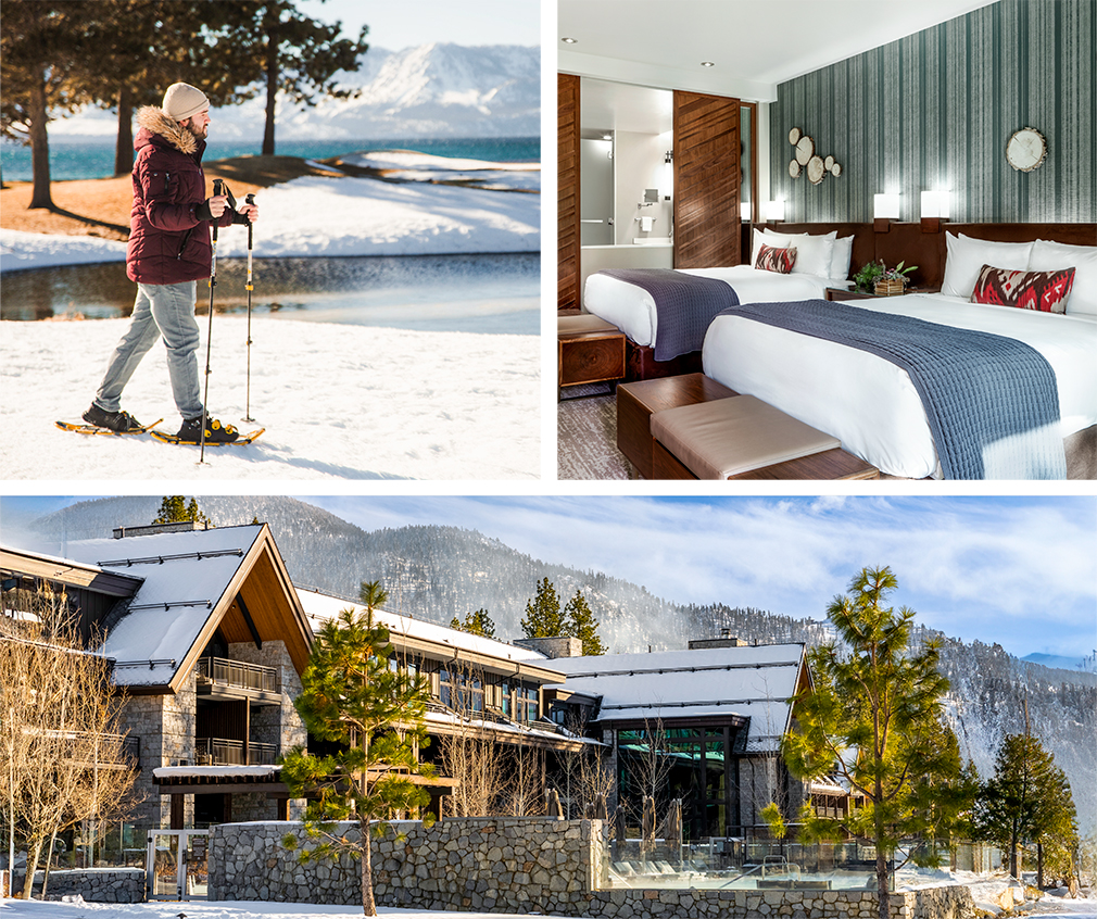 The Incline Lodge on the North Shore of the lake debuts a newly renovated, boutique and locally owned hotel. A roaring fireplace and cozy vibes greet you in the spacious lobby, a great place to enjoy drinks with friends after a day on the slopes. The guest rooms offer an alpine view and a Tahoe-inspired design, including a charming toile wallpaper in the bathrooms. On cold and stormy days, be sure to take advantage of the heated indoor pool.