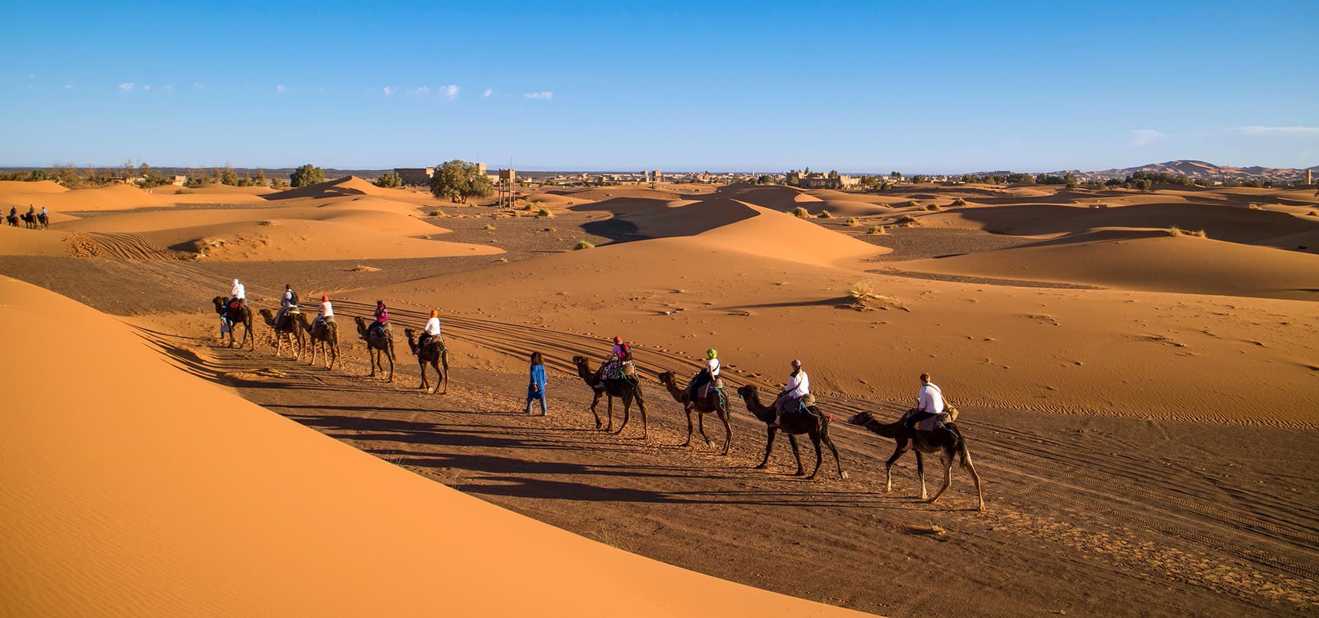 Feel the wind rush past your face as you freewheel towards the northern foothills of the High Atlas Mountains. Pedal through red-rock valleys, cruise past lush almond groves and meet local Berber farmers tending to their crops of barley, olives and figs.