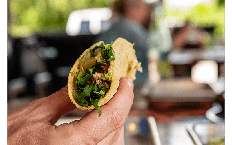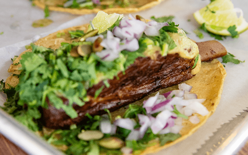 Joseph Creech began cooking tacos de suadero—tacos with slow-cooked beef brisket—to satisfy his wife’s yearning for this culinary specialty from her hometown of Mexico City. Today, Hunger Street Tacos, located in Winter Park, is built on this labor of love and named after the place that inspires its menu and atmosphere: La Calle del Hambre.