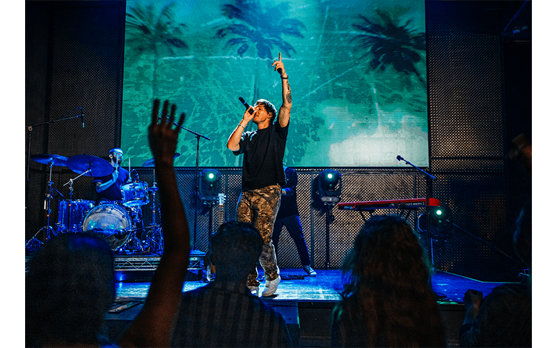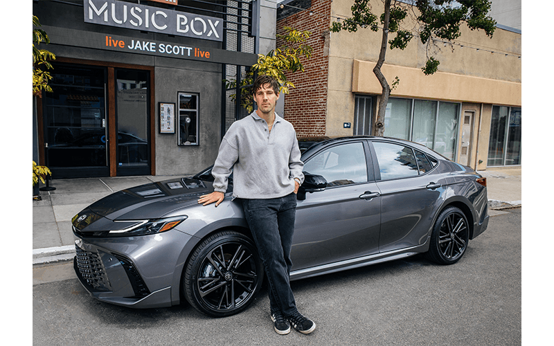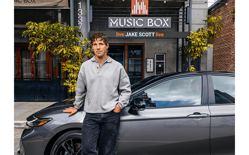 Jake’s penchant for honest, heartfelt storytelling comes through in two of his most-loved songs: “California Rain” and “Green Eyes.” After a day of cruising around San Diego in the Toyota Camry XSE and exploring the lush backdrop of Balboa Park, he takes to the stage at Music Box in the Little Italy neighborhood to play them live.