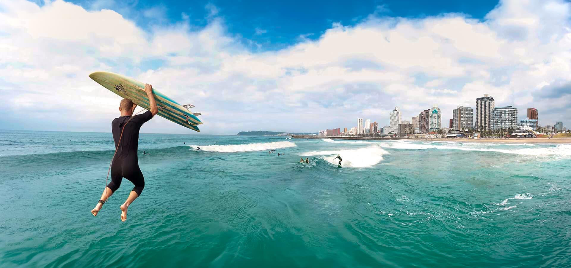 While J-Bay is certainly a contender as South Africa’s surf mecca, Durban is arguably its strongest competition. Located on the sub-tropical East Coast in KwaZulu-Natal, this South African surf destination with many beach, reef, and point breaks is as attractive on a board as it is on land. The onshore atmosphere in this surf city is utterly electric, while its waves cater to every level of surfer, from beginner to world-class. Golden Mile, Addington Beach, and uShaka are known for their more mellow and rolling beginner-friendly waves, while New Pier and Cave Rock bring barrels on the regular under the right conditions.