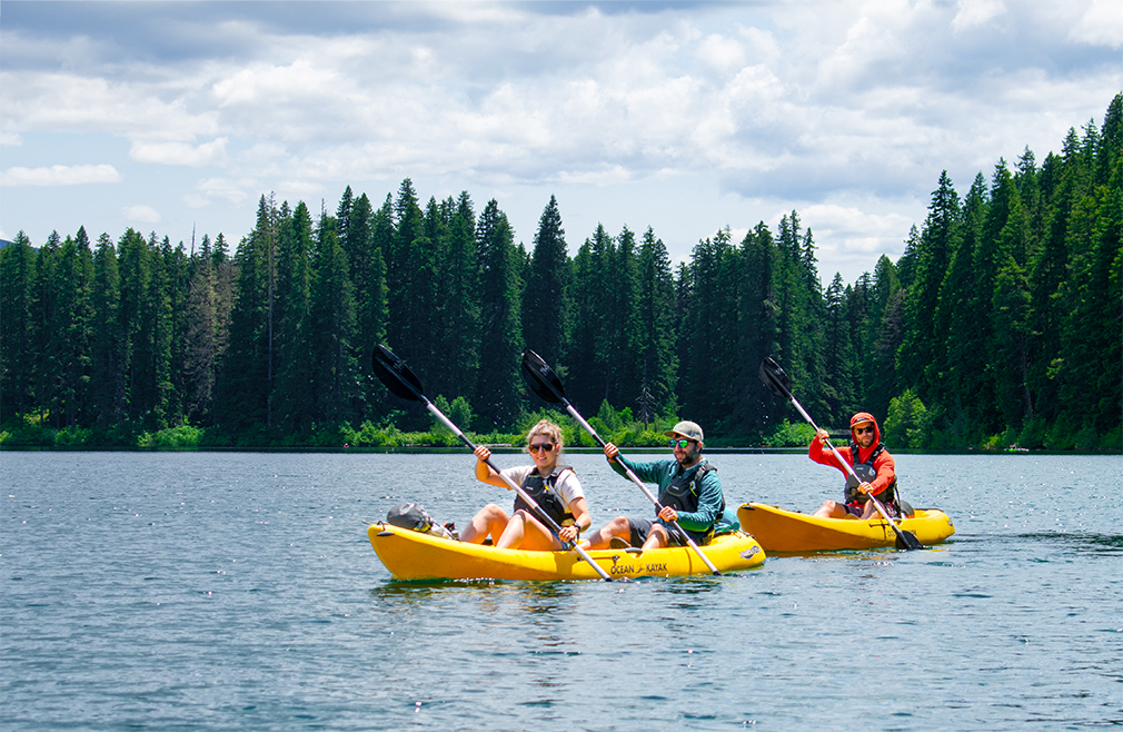 For canoeing and kayaking, cave and volcano exploring, and hiking along Paulina Lake in the Deschutes National Forest, book a private or guided excursion with Wanderlust Tours. In the winter, embark on a snowshoeing adventure at nearby Virginia Meissner Sno-Park and Mt. Bachelor or reserve an overnight snow camping experience.