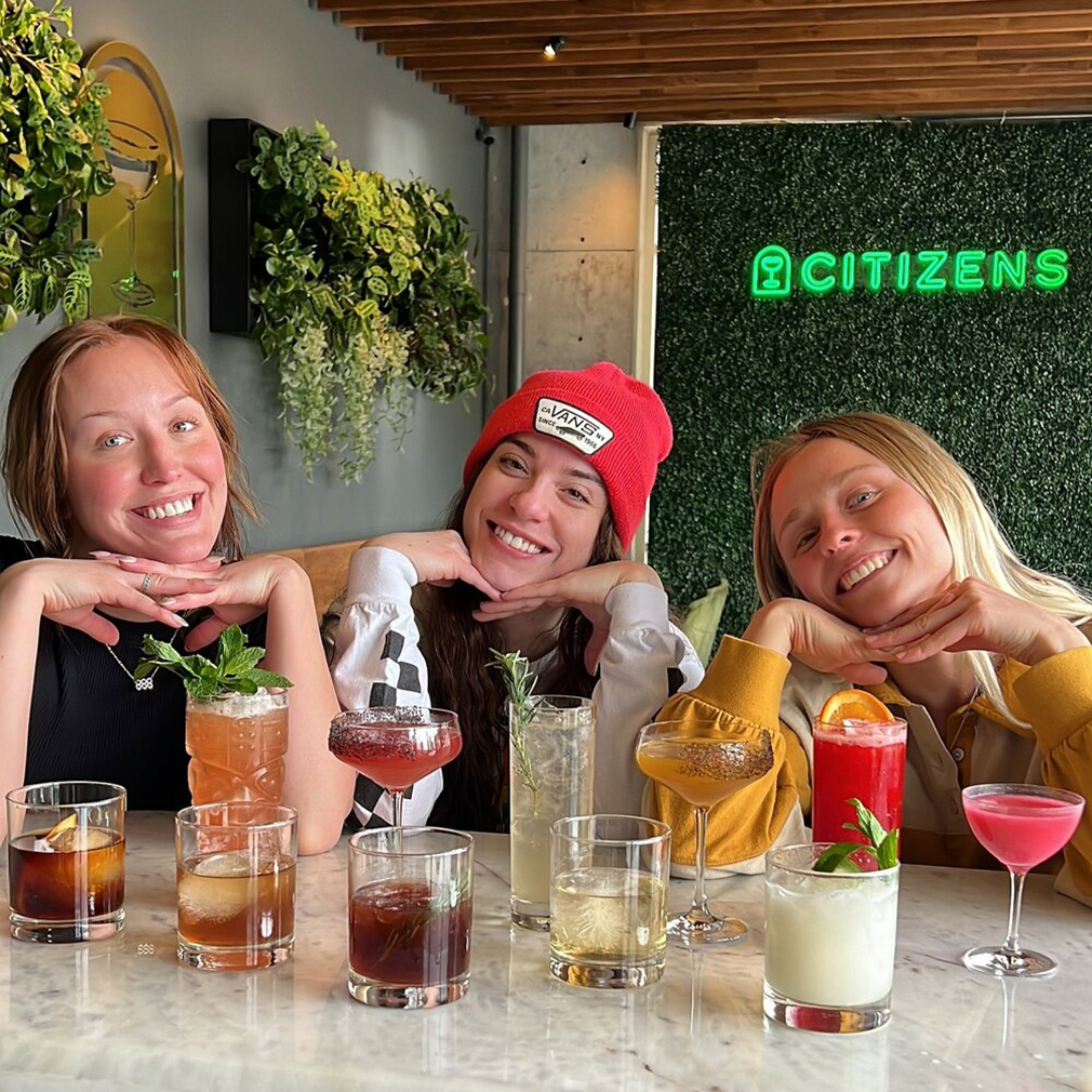 A light dinner with handcrafted cocktails is the move at Citizens Cocktails & Kitchen. Enjoy shareable snacks, like whipped brie and warm marinated olives, paired with the Foxy Lady cocktail.