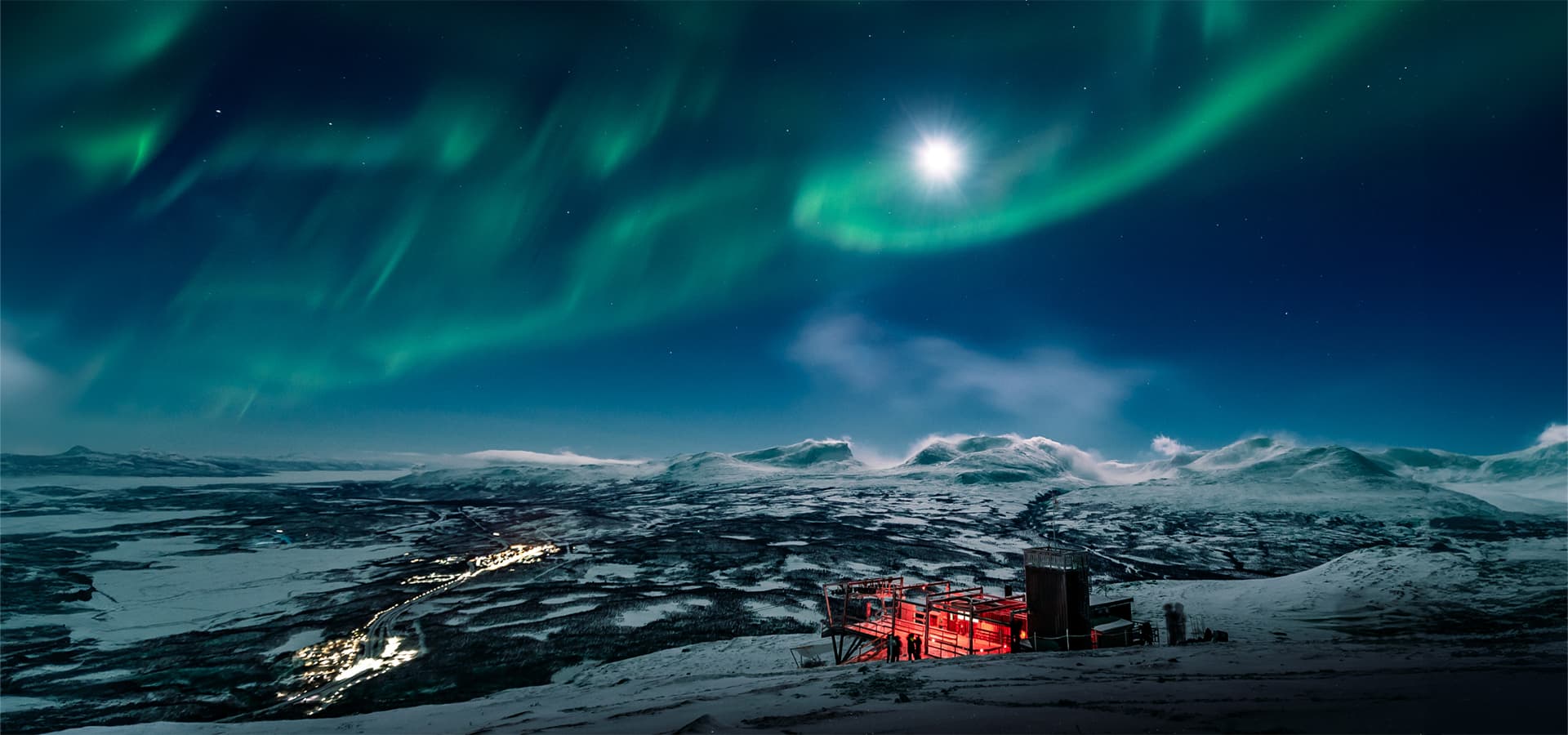 Máttaráhkká Northern Lights Lodge is another pristine choice. Experience the show from a comfortable outdoor hot tub or chase the lights on a snowmobile.