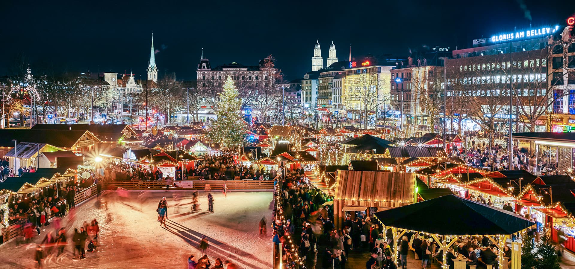 Another winter wonderland this time of year is Zurich. In addition to its classic decorations and light installations, here you will also find a good amount of events from Christmas markets and the traditional candle dipping at Bürkliplatz, and the “Märlitram” fairy tale tram. This year, the city will also welcome a number of pop-up experiences for the Christmas season, including temporary chalets serving fondue and mulled wine, as well as a new unique hotel experience called Hotel Noël.